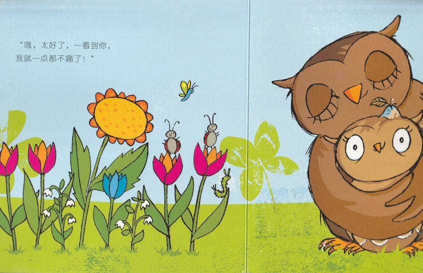 2、为什么小猫头鹰看到妈妈,包包就不痛了呢?
