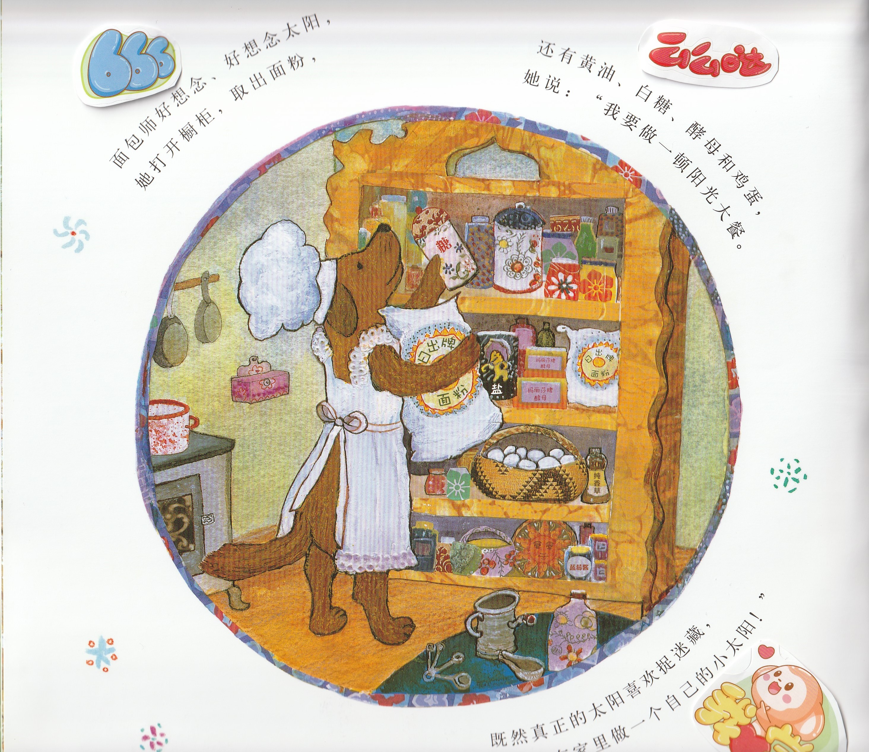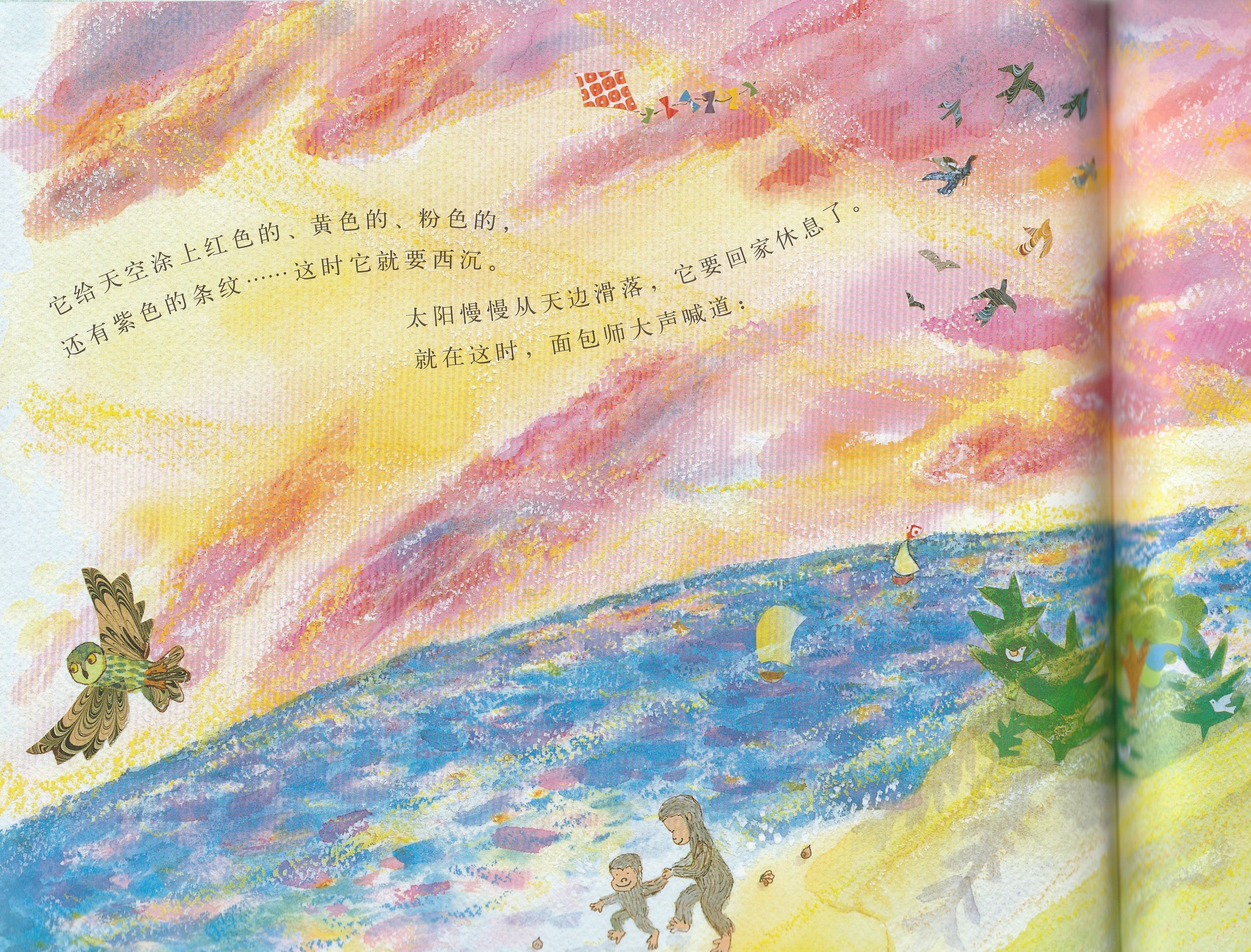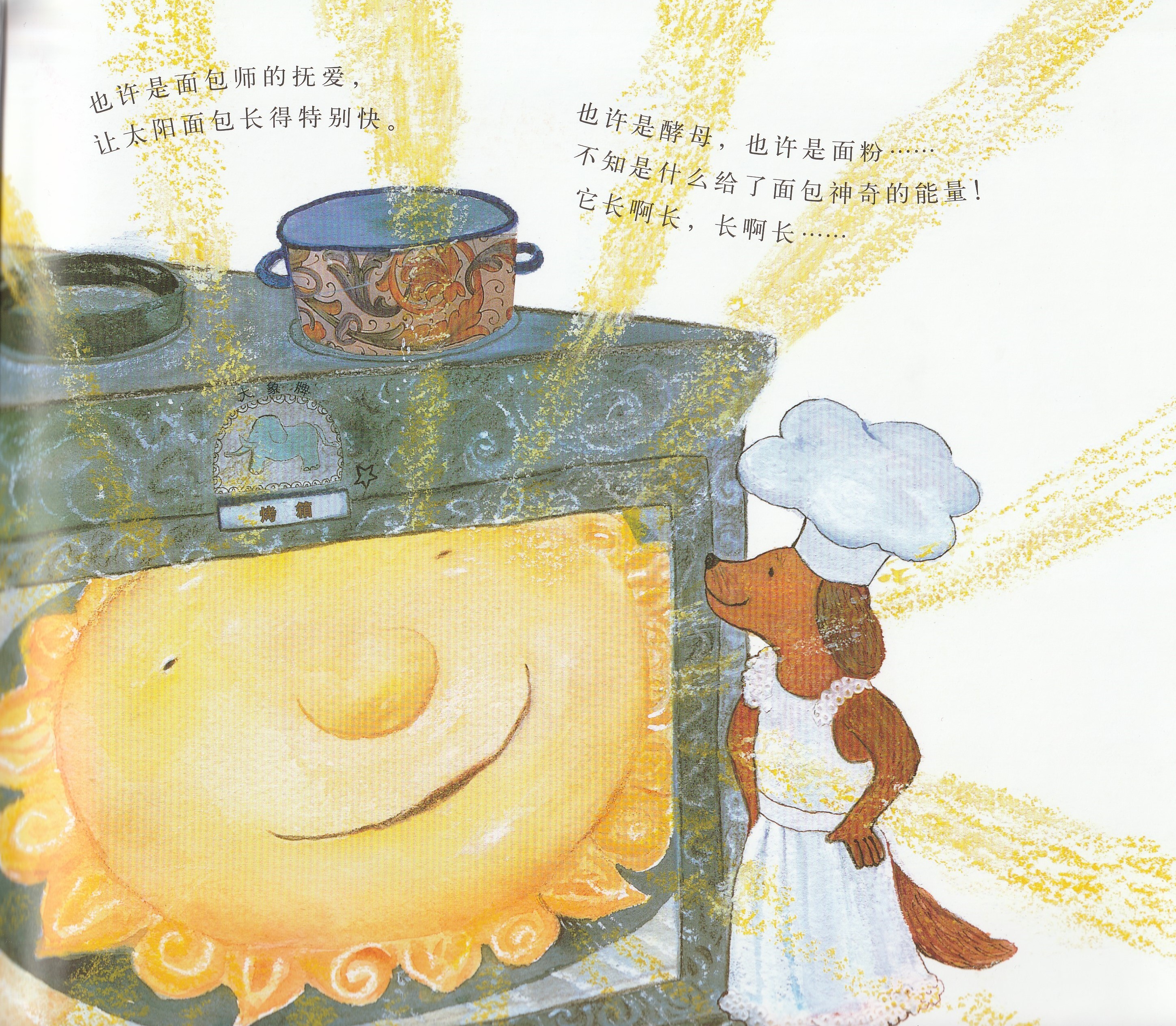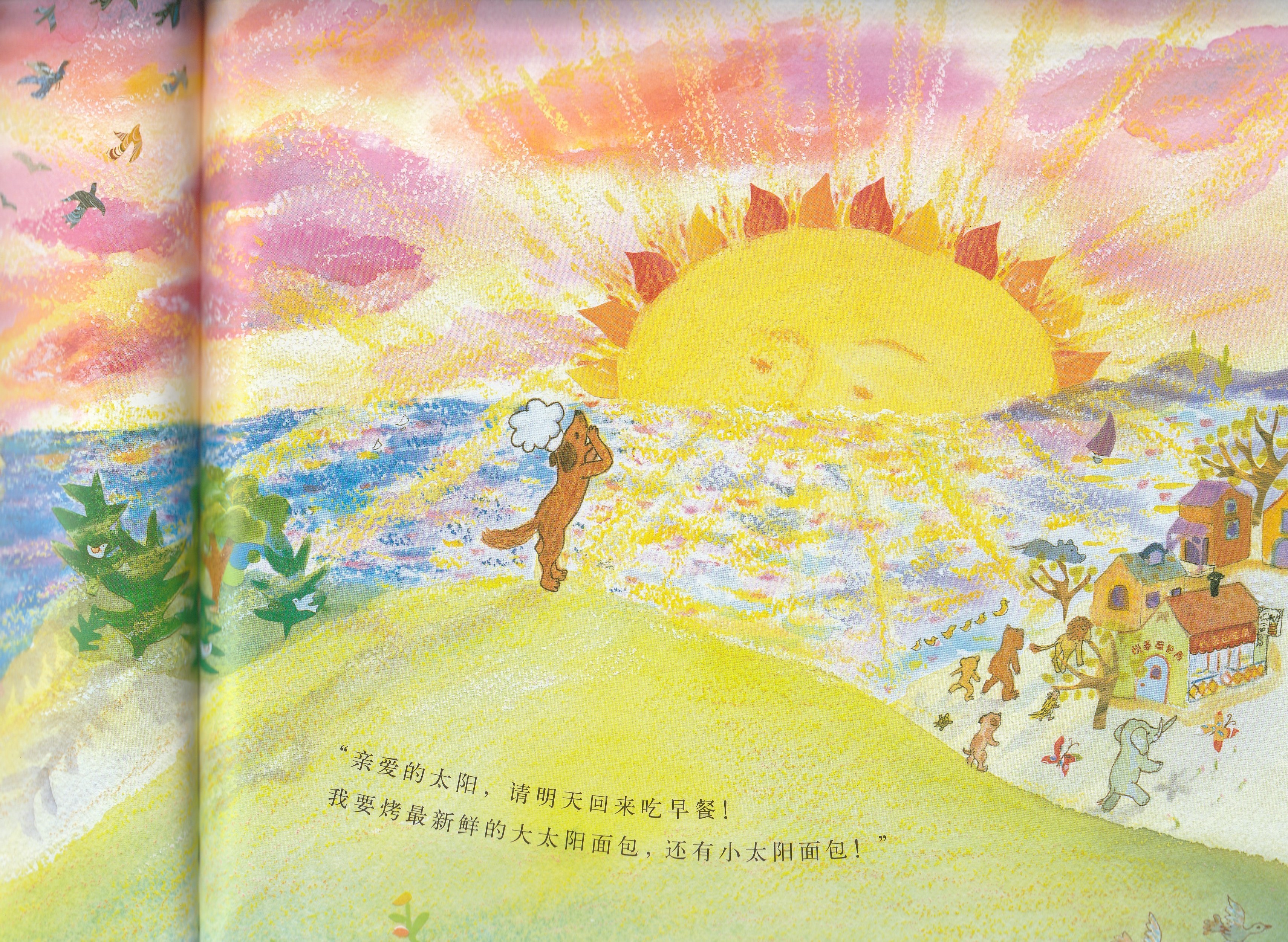 本书是启发精选世界优秀畅销绘本系列之一,适合3岁以上儿童阅读。作者以美妙辉煌的绘图呈现了狗狗面包师召唤太阳的故事,展现了一个梦幻般和谐而美好的自然世界,在潜移默化中告诉孩子,追求梦想的真挚感情可以超越一切隔膜和界限。欢乐盛大的画面中,众多可爱可亲的动物和诸多好看好玩的细节,引诱小朋友的好奇心去观察发现;略带悬疑色彩的故事,会牢牢抓住小朋友的好奇心,促使小朋友跟着面包师一起期待太阳的出现。书后还附有一份烘焙食谱,教你烤制自己的太阳面包!