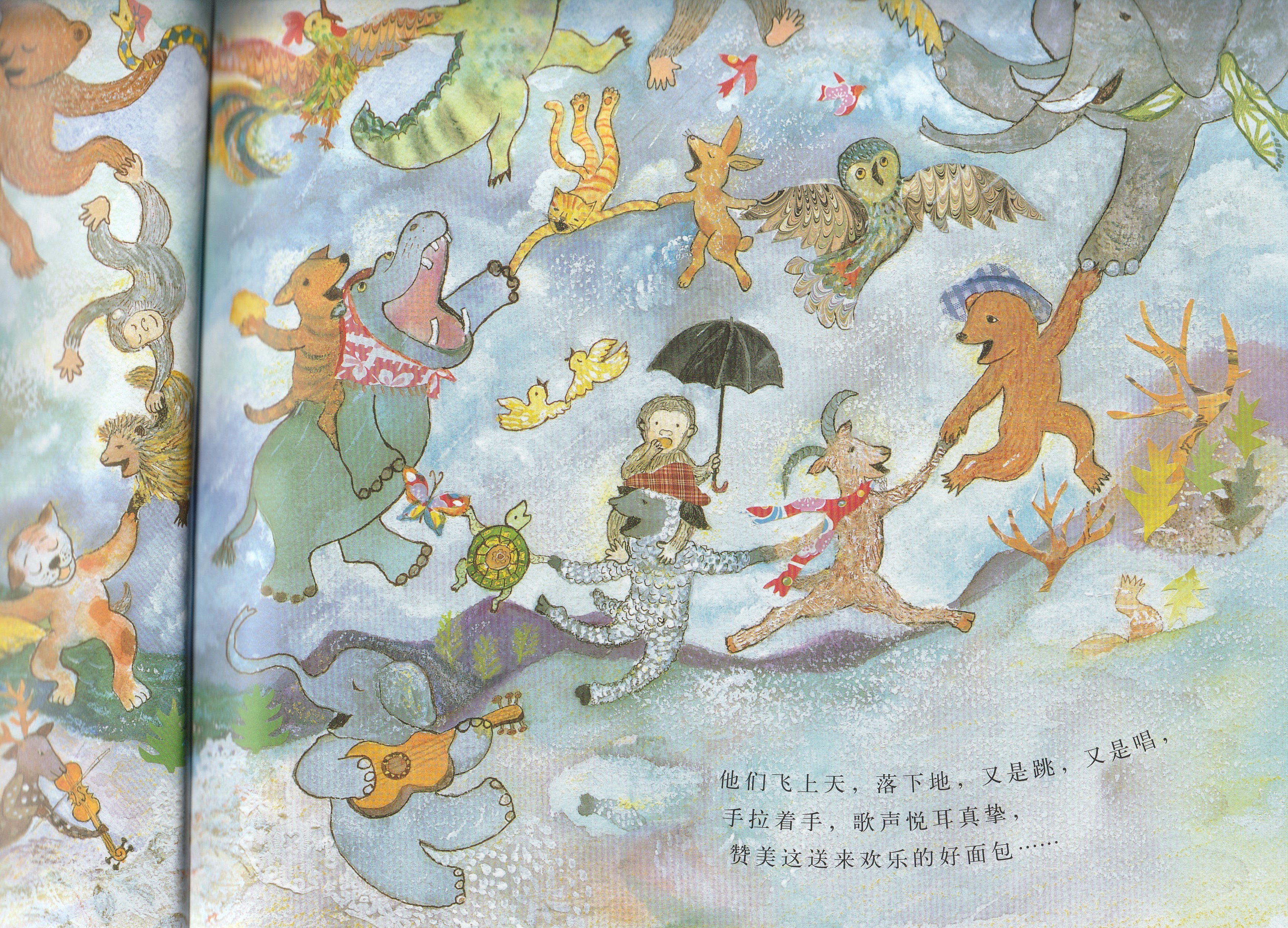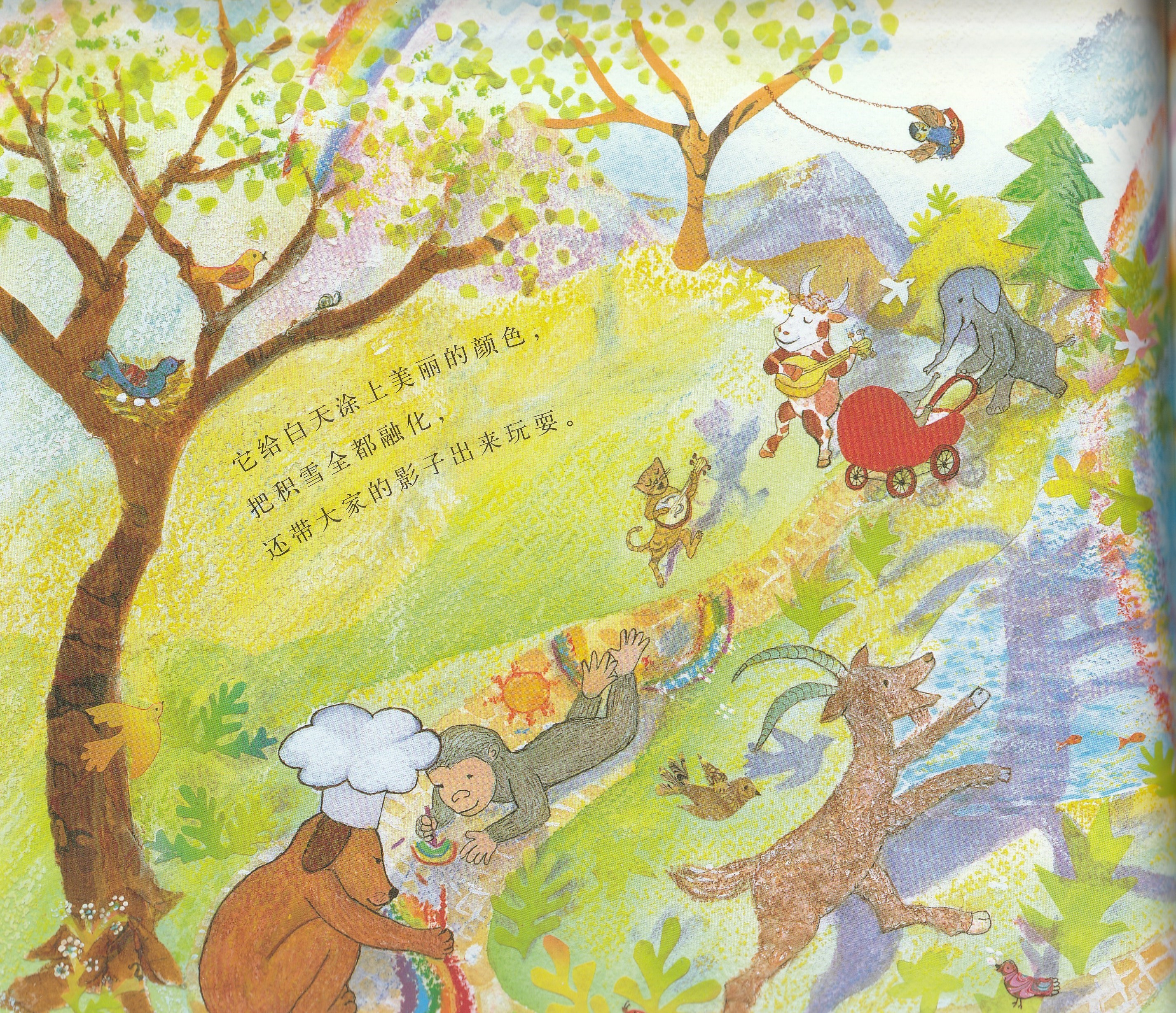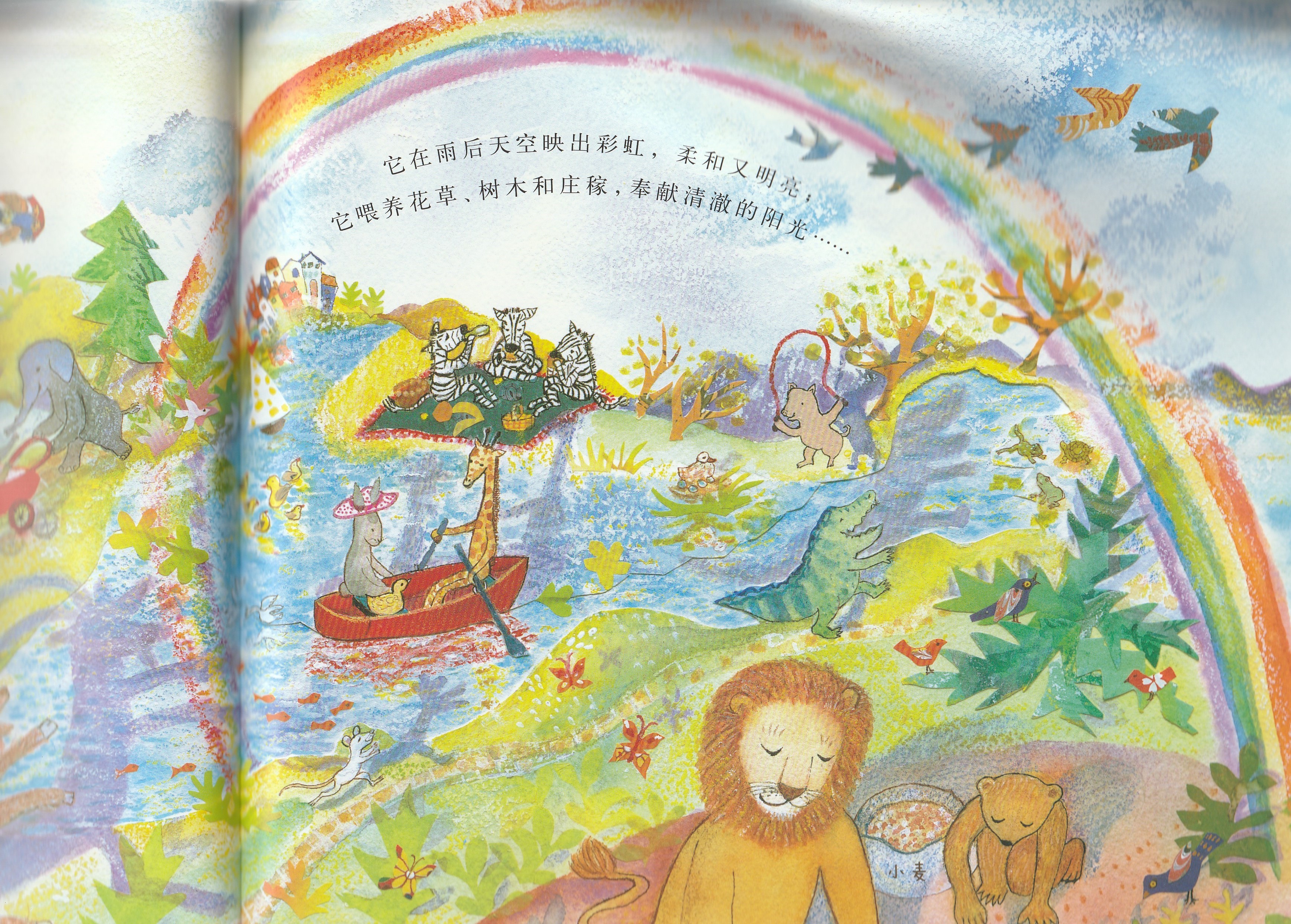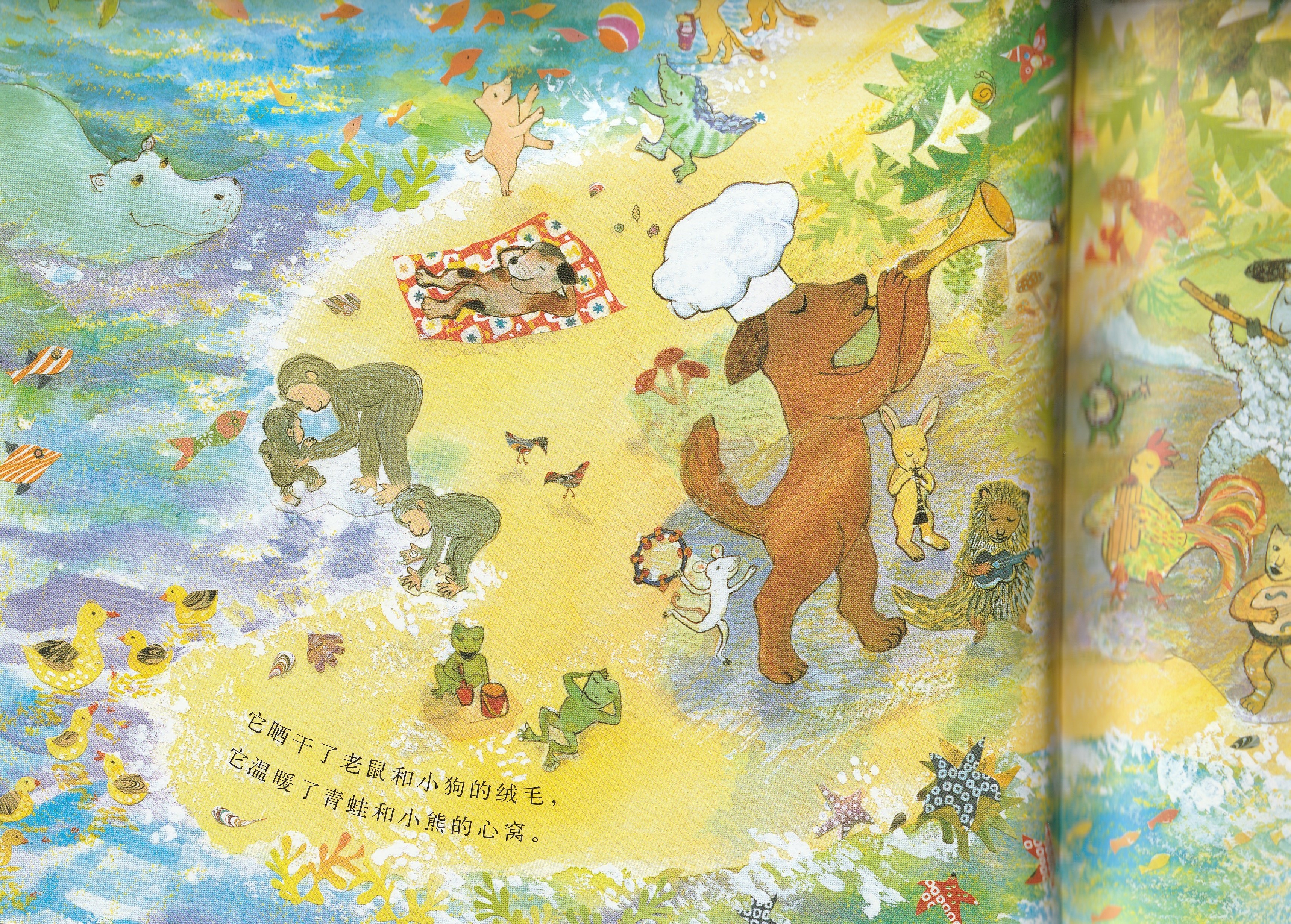 本书是启发精选世界优秀畅销绘本系列之一,适合3岁以上儿童阅读。作者以美妙辉煌的绘图呈现了狗狗面包师召唤太阳的故事,展现了一个梦幻般和谐而美好的自然世界,在潜移默化中告诉孩子,追求梦想的真挚感情可以超越一切隔膜和界限。欢乐盛大的画面中,众多可爱可亲的动物和诸多好看好玩的细节,引诱小朋友的好奇心去观察发现;略带悬疑色彩的故事,会牢牢抓住小朋友的好奇心,促使小朋友跟着面包师一起期待太阳的出现。书后还附有一份烘焙食谱,教你烤制自己的太阳面包!